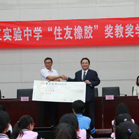 為了更好地履行企業(yè)社會(huì)責(zé)任、推動(dòng)當(dāng)?shù)亟逃聵I(yè)發(fā)展,9月20日,住友橡膠(中國(guó))有限公司繼2016年設(shè)立“住友橡膠獎(jiǎng)教獎(jiǎng)學(xué)”基金后,再一次向常熟市濱江實(shí)驗(yàn)中學(xué)捐贈(zèng)5萬(wàn)元住友橡膠獎(jiǎng)教獎(jiǎng)學(xué)基金,用于獎(jiǎng)勵(lì)認(rèn)真投入到教學(xué)這一神圣職務(wù)中的教師、以及為不辜負(fù)老師期待,每天勤奮讀書(shū)的同學(xué)們。